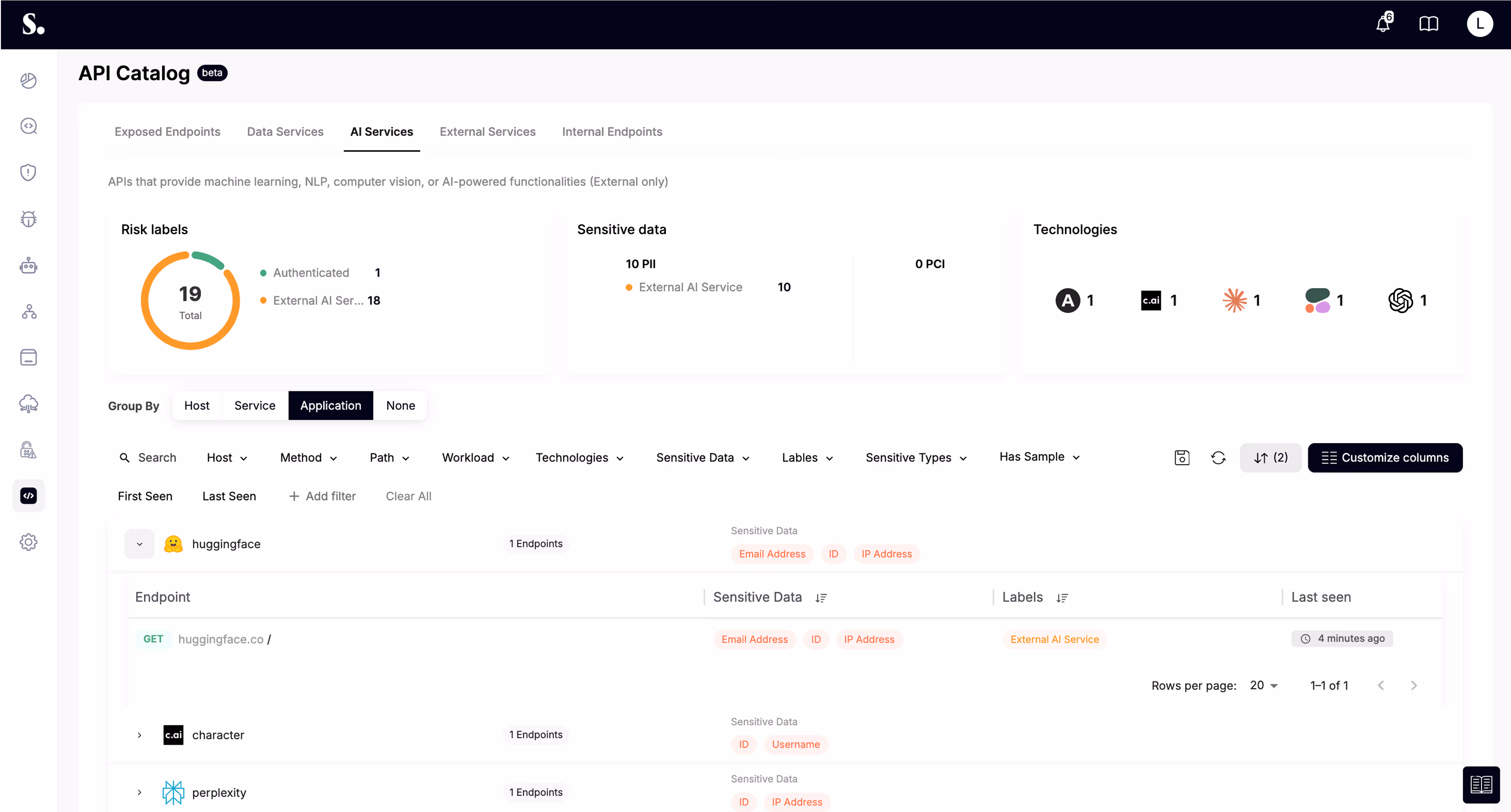 Monitor for Personally Identifiable Information (PII), secrets, and other sensitive data traversing AI workflows.